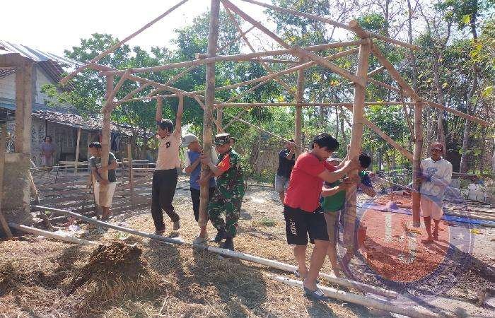 Babinsa Koramil 0805/13 Kedunggalar Bersama Masyarakat Kerja Bakti Bedah Rumah Warga