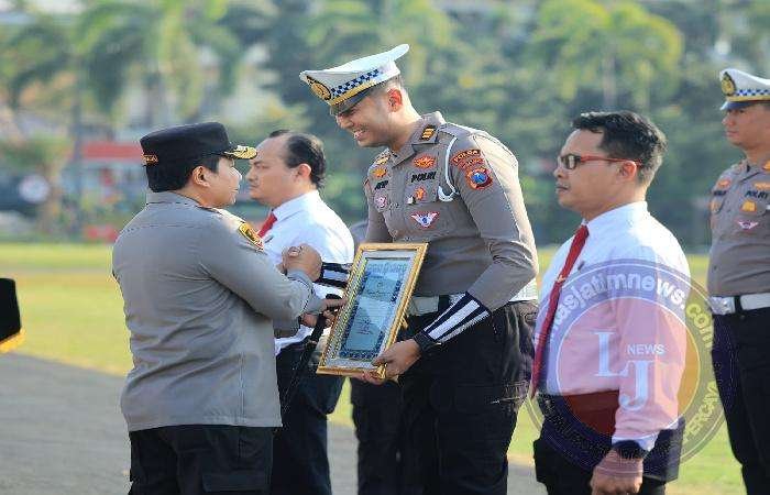 Penghargaan ini diberikan langsung oleh Kapolda Jatim Irjen Pol Dr Toni Harmanto,M.H kepada anggota berprestasi, usai apel gabungan satuan kerja Polda Jatim di lapangan apel Polda Jatim.