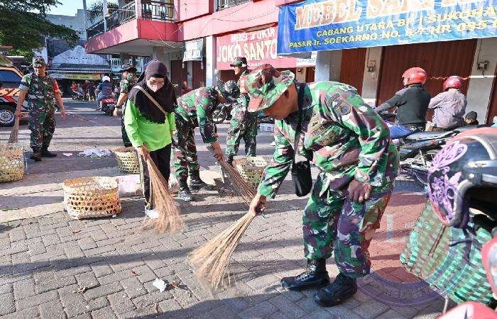 “Dalam rangka memperingati HUT TNI ke 78 dan HUT Kodam IV Diponegoro ke 73 Ta 2023 ini, kami menggelar Karya Bhakti bersih-bersih pasar, agar kehadiran kami langsung dirasakan oleh masyarakat luas dan diharapkan dapat membangkitkan serta menumbuhkan kembali sikap gotong-royong dan semakin memperkuat kecintaan rakyat terhadap TNI,” terang Kasdim 0726/Sukoharjo.