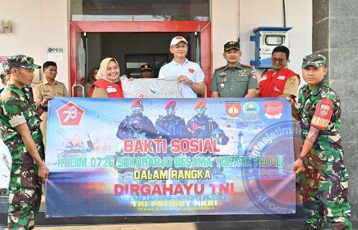SUKOHARJO lintasjatimnews.com – Dalam rangka HUT TNI Ke-78 Tahun 2023, Kodim 0726/Sukoharjo bersama Yukata Peduli Bangsa, menyerahkan bantuan berupa alat penunjang donor darah kepada PMI Kabupaten Sukoharjo, Selasa (3/10/23).
