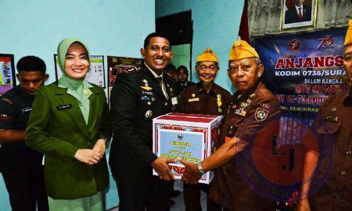 Peringati HUT Ke-78 TNI Dan HUT Ke-73 Kodam IV/Diponegoro, Dandim 0735/Surakarta Anjangsana Dan Berikan Bantuan Paket Sembako Kepada LVRI Kota Surakarta