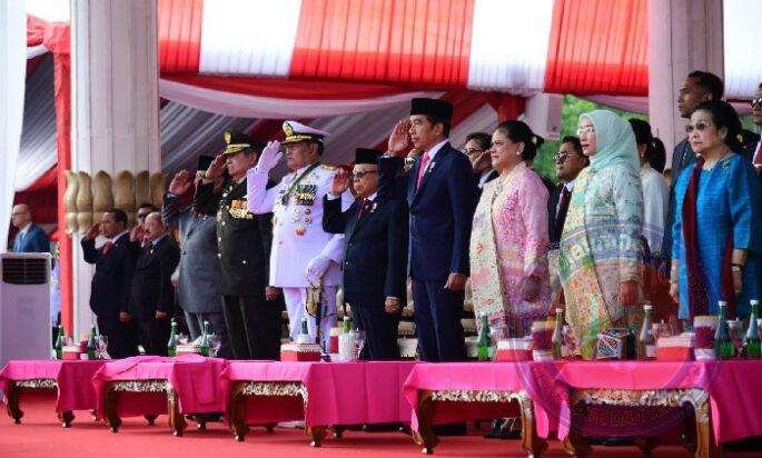 Selepas rangkaian upacara, Presiden Jokowi menyaksikan demonstrasi udara, defile pasukan, dan pawai alat utama sistem senjata (alutsista) TNI.