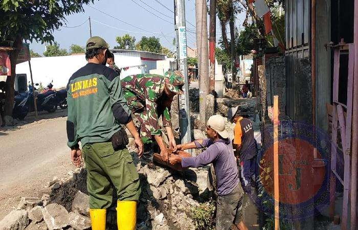 Koramil 02/Banjarsari Bersama Warga Kerja Bakti Bangun Saluran Air Program TMMD Sengkuyung Tahap III
