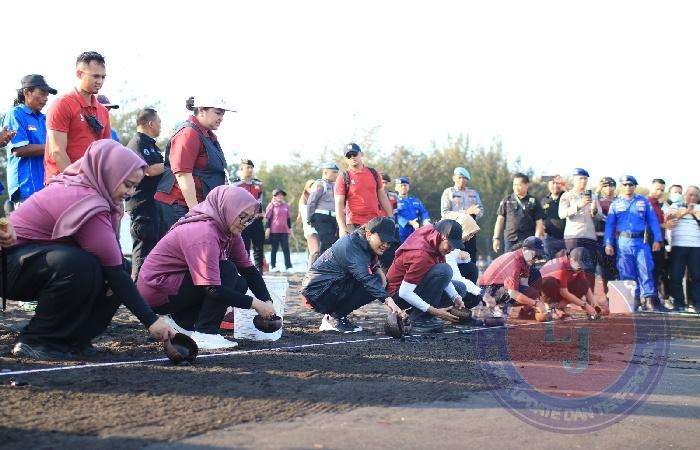 Bhayangkari Peduli, Ketua Umum Bhayangkari Melepas 700 Tukik danTanam Mangrove di Pantai Cemara Banyuwangi