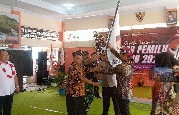 PROBOLINGGO lintasjatimnews.com – Komandan Koramil (Danramil) 0820/24 Tiris Kapten Inf Mohammad Toha bersama jajaran forum kordinasi pimpinan kecamatan serta sejumalah pihak terkait ikut ambil bagian dalam serah terima kirab pemilu tahun 2024 di Kantor Kecamatan Tiris, Minggu (8/10).