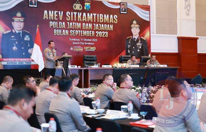 Kembali Polda Jawa Timur beserta seluruh Polres/tabes/ta yang ada di jajaran melaksanakan kegiatan Analisa dan Evaluasi (Anev) Situasi Keamanan dan Ketertiban Masyarakat (Sitkamtibmas) tahun 2023, serta persiapan Pemilu Tahun 2024.