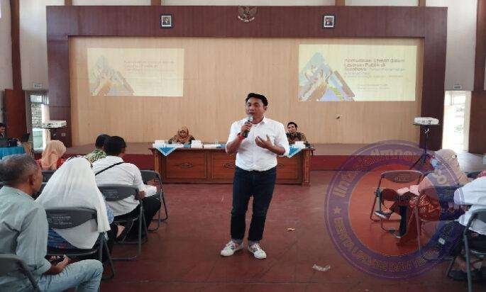 Dr. Jokhanan Kristiyono, ST., M.Med. Kom., pakar komunikasi dari Stikosa AWS, salah satu narasumber Forum Konsultasi Publik menyajikan materi bertajuk ‘Komunikasi Efektif dalam Layanan Publik di Surabaya (dengan melibatkan) Peran Kecamatan dan Kelurahan’.