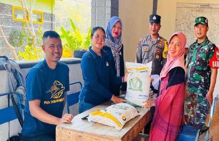 TRENGGALEK lintasjatimnews.com – Babinsa Sukowetan Kopda Imron Koramil 0806/08 Karangan dan Bhabinkamtibmas Sukowetan Bripka Wahyu berkolaborasi bersama-sama untuk mendampingi penyaluran bantuan pangan cadangan beras yang diselenggarakan oleh petugas Kantor Pos Indonesia di Balai Desa Sukowetan, Kecamatan Karangan, Kabupaten Trenggalek, Jumat (13/10/2023).