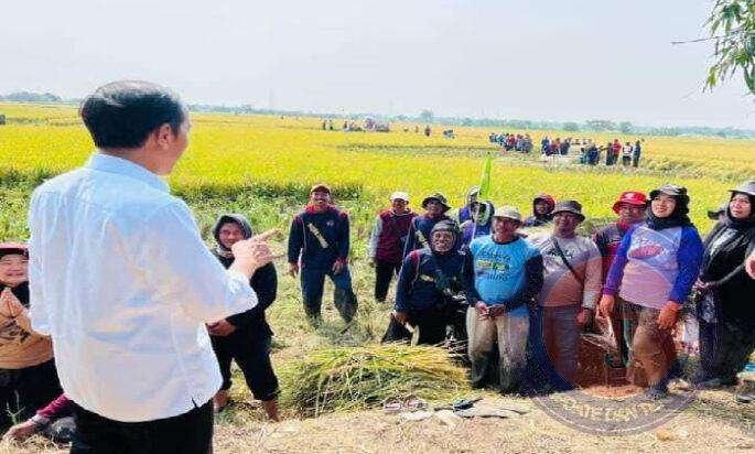 INDRAMAYU lintasjatimnews.com – Presiden Joko Widodo mengecek langsung kegiatan panen raya untuk memastikan produksi beras nasional masih baik di tengah kekeringan akibat Super El Nino. Hal tersebut disampaikan Presiden dalam keterangannya di Kecamatan Sukra, Kabupaten Indramayu, Provinsi Jawa Barat, (13/10/23).