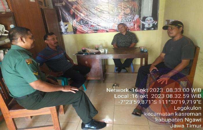 NGAWI lintasjatimnews.com – Babinsa Posramil 0805/19 Kasreman Kodim 0805/Ngawi Serda Yudi Santoso melaksanakan kegiatan Sosialisasi Kepada Warga Masyarakat Desa Karangmalang tentang pencegahan bahaya kebakaran lahan kering, Senin (16/10/2023).