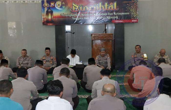 NGANJUK lintasjatimnews.com – Kapolres Nganjuk AKBP Muhammad, S.H., S.I.K., M.Si., mengungkapkan guna mempertebal keimanan dan memperteguh mental anggotanya, Polres Nganjuk Polda Jatim menggelar program Polisi Santri dikemas dalam pembinaan rohani dan mental (Binrohtal) dengan melibatkan ulama Kamtibmas.