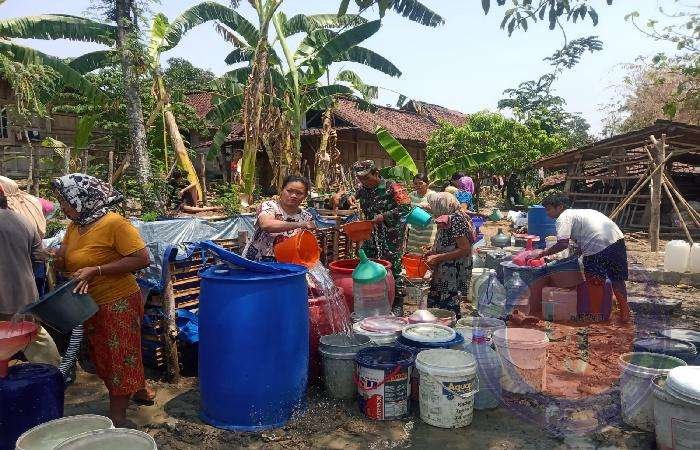 “Akibat kemarau yabg terjadi sejak kurang lebih 5 bulan terakhir ini telah mengakibatkan kekeringan di beberapa desa di wilayah Koramil 17/Wonosegoro, Hal ini menimbulkan keprihatinan sejumlah pihak untuk ambil bagian membantu menyalurkan air bersih” ucap Babinsa
