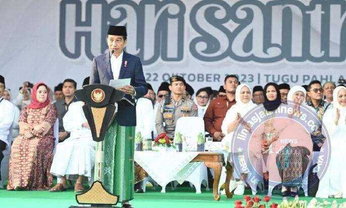 “Semangat hari santri ini harus terus kita pegang teguh sesuai dengan konteks saat ini, konteks kondisi saat ini di mana juga ada krisis ekonomi akibat perang, adanya krisis pangan akibat perang, adanya krisis energi akibat juga adanya perang,” ucap Presiden.