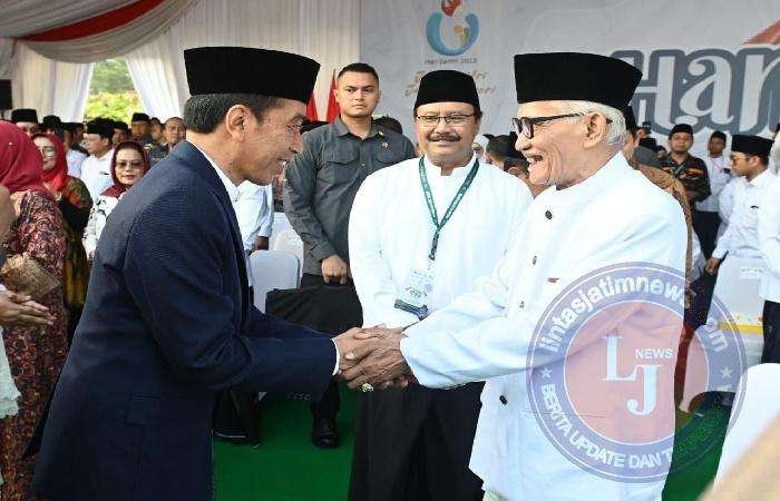 SURABAYA lintasjatimnews.com – Presiden Joko Widodo dan Ibu Iriana Joko Widodo menghadiri Apel Hari Santri Tahun 2023 yang digelar di Monumen Tugu Pahlawan, Kota Surabaya, Provinsi Jawa Timur.(22/10/23).