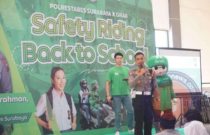 SURABAYA lintasjatimnews.com – Dalam rangka antisipasi maraknya pelajar menggunakan kendaraan bermotor yang tidak memiliki SIM dan tidak mengetahui etika berlalu lintas, Satlantas Polrestabes Surabaya berkolaborasi dengan Grab menggelar kegiatan Safety Riding Back to School di SMAN 5 Surabaya