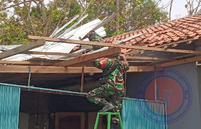 BOYOLALI lintasjatimnews.com – Pasca bencana alam angin puting beliung yang menerjang dukuh Dersono Desa Gondangrawe Kecamatan Andong Kabupaten Boyolali. Danramil 15/Kodim 0724/Boyolali Kapten Inf Slmaet Jaka Mulyana bersama lima Anggota Koramil 156/Andong pimpin untuk membantu warga memperbaiki rumah warga yang rusak akibat bencana tersebut. ( 27/10/23)