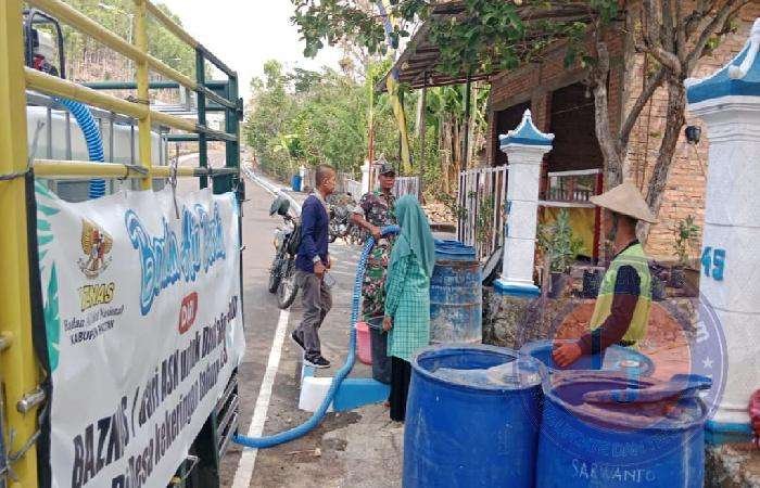 Pada kesempatan ini, Baznas Kab. Pacitan dibantu Babinsa Koramil 0801/11 Donorojo Kodim 0801/Pacitan menyalurkan bantuan air bersih kepada warga yang berada di Dusun Gunungsari, Ploso, Glonggong, Desa Belah, Kec. Donorojo, Kab. Pacitan, Selasa (31/10/2023).