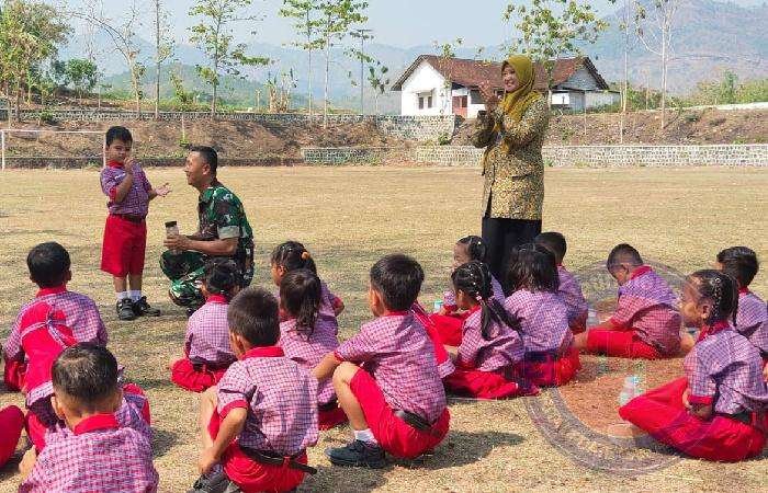 Pagi yang cerah dua persinil TNI tersebut berikan motivasi kepada Anak-anak secara dini agar mereka tidak takut kepada Aparat Komando Kewilayahan (Babinsa) dan supaya termotivasi untuk kedepan supaya menjadi generasi penerus Bangsa yang sangat di banggakan.