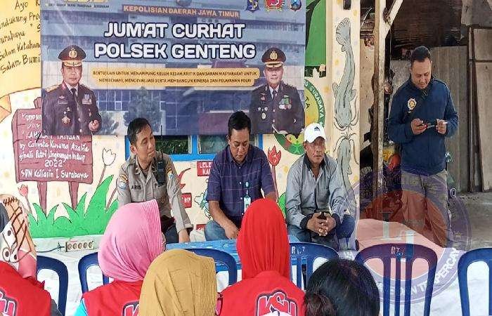 Juma’at Curhat Kapolsek Genteng yang pertama kali di adakan di wilayah RT 07 RW 02 Plampitan dihadiri warga dan kader Surabaya hebat RW 02 Plampitan ,ketua RT 07,Kasitrantib kelurahan ,LPMK,satpol PP kelurahan ,linmas Peneleh dan dihadiri Ipda Aris sebagai perwakilan dari Kapolsek Genteng dan hadir pula semua jajaran Bhabinkamtibmaspol Polsek Genteng Surabaya.