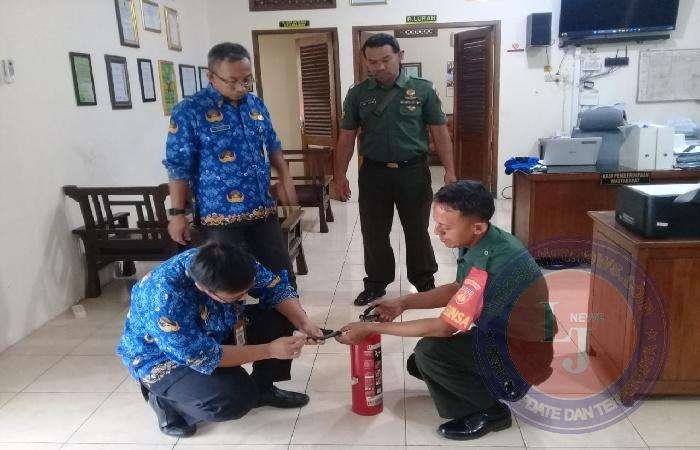 Babinsa Keprabon melakukan pengecekan Alat Pemadam Api Ringan (APAR) yang berada di kantor Kelurahan Keprabon guna memastikan alat tersebut berfungsi dengan baik dan normal untuk mencegah kebakaran skala ringan.