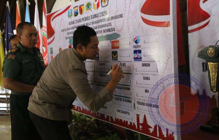Kapolres Tulungagung juga menegaskan Deklarasi Pemilu Damai ini menjadi bukti komitmen dan keseriusan semua pihak dalam menjalani proses Pemilu 2024 dengan damai, demokratis, dan menghormati prinsip-prinsip demokrasi serta menjaga keutuhan negara.