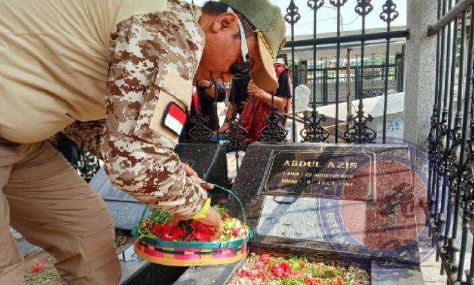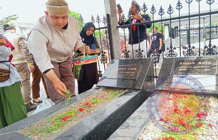 SURABAYA lintasjatimnews.com – Civitas akademika Stikosa AWS berziarah di TPU Ngagel Surabaya, Jumat (10/11/2023) pagi. Rombongan yang terdiri dari pimpinan, dosen, karyawan, alumni, dan mahasiswa ini berhenti di makam Bung Tomo, tokoh penting dalam peristiwa 10 November 1945. Setelah itu di makam Abdul Aziz dan Toeti Aziz, pasangan suami istri pemilik koran legendaris Harian Sore Surabaya Post.