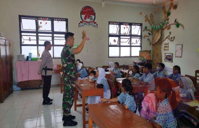 SURAKARTA lintasjatimnews.com – Babinsa Kelurahan Tipes Koramil 03/Serengan Kodim 0735 Surakarta Serka Sarmin dan Serka Anjasmoro didampingi Aipda Anton Bhabinkamtibmas Tipes melaksanakan pengerahan siswa siswi di Sekolah Dasar Negeri Kawatan ini salah satu nilai atau dasar-dasar Pancasila dan nilai-nilai moral Pancasila sebagai pandangan hidup, di SDN Kawatan Jalan Honggowongso No.39 kel.Tipes kec.Serengan. Pukul 08.00 wib, Rabu 15 November 2023.