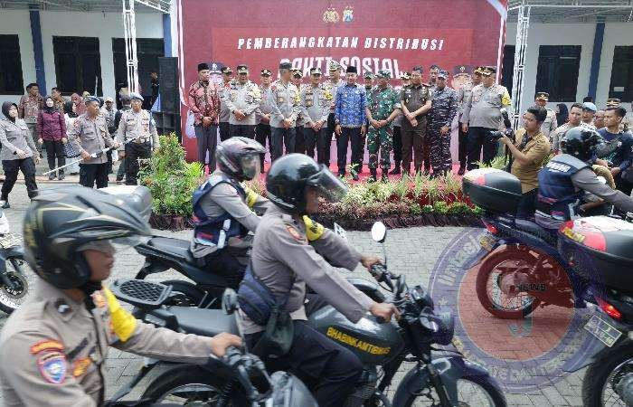 Kapolda Jawa Timur Irjen Pol Imam Sugianto, didampingi pejabat utama (PJU) Polda Jatim memimpin pemberangkatan distribusi bakti sosial (baksos) dan bakti kesehatan (bakkes) yang dilaksanakan di GOR Indor Wijaya Kusuma, Kabupaten Sampang, Jawa Timur.