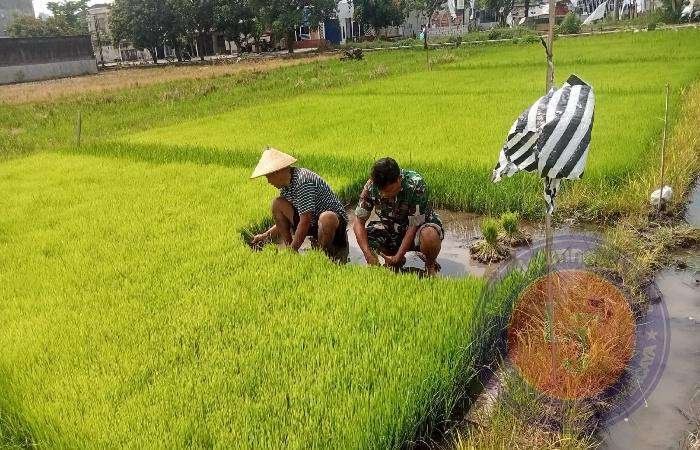 Tanpa sungkan dan dengan penuh semangat Sertu Marulak langsung terjun ke sawah memberikan motivasi serta melaksanakan pendampingan penanaman padi pada persawahan milik Bapak Suparno.