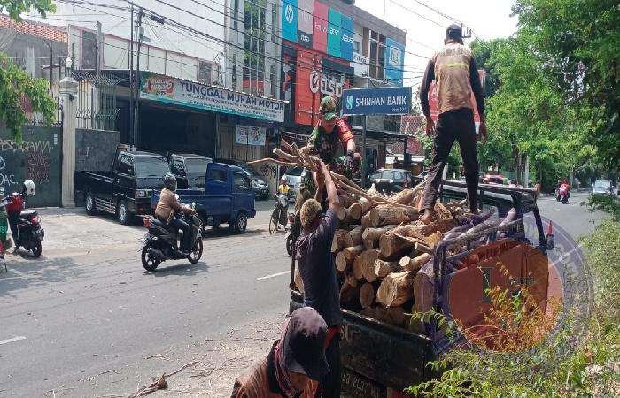 Penebangan pohon sebagai upaya menghadapi kondisi cuaca yang tidak menentu pada saat terjadi hujan yang di sertai angin kencang dan dapat menimbulkan banyak kerawanan, terutama pohon tumbang yang berada di pinggir jalan.