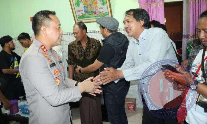 GRESIK lintasjatimnews.com – Kapolres Gresik AKBP Adhitya Panji Anom bersama pentolan suporter menjenguk korban luka akibat bentrokan di Stadion Gelora Joko Samudro. Kapolres mengunjungi kediaman korban di Cerme, Senin (20/11/2023).