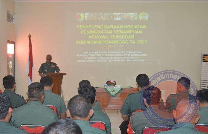 Komandan Kodim 0802/Ponorogo, Letkol Inf Hirta Juni Adriansyah, S. Sos. M. Han. dalam sambutan yang dibaca Kepala Staf Kodim 0802/Ponorogo, Mayor Inf Misirin menyampaikan bahwa digelarnya kegiatan tersebut merupakan salah satu upaya Komando Atas dalam meningkatkan profesionalisme para Aparat Komando Kewilayahan khususnya di Kodim 0802/Ponorogo agar dapat melaksanakan tugas pokok secara optimal.