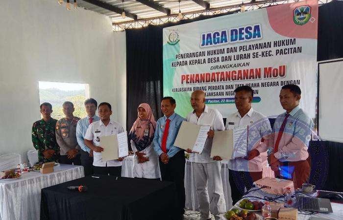 Kegiatan sosialisasi penerangan dan pelayanan hukum kepada Kepala Kelurahan dan Kepala Desa Se Kecamatan Pacitan, dirangkaikan dengan penandatanganan MOU kerjasama Bidang Perdata dan Tata Usaha Negara dengan Kejaksaan Negeri Pacitan sebagai bentuk komitmen untuk membangun kesadaran hukum.