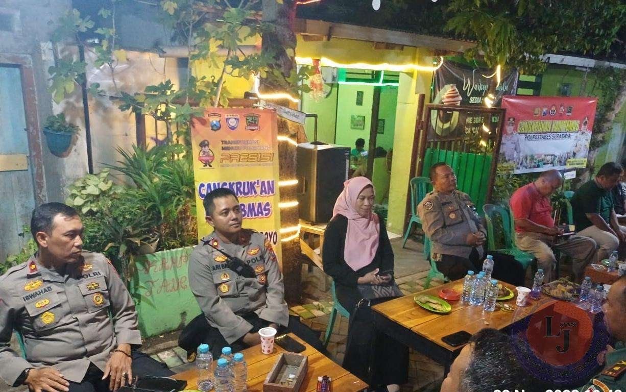 Polrestabes Surabaya bersama Polsek Tambaksari menggelar acara cangkrukan Kamtibmas bersama warga di Jalan Pacarkeling 5 Surabaya, Rabu (22/11/2023) malam