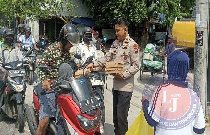 Awalnya kaget saya kira ada operasi kendaraan tapi setelah dekat Lah kok dibagiin kotakan, ya akhirnya ikutan minggir menerima nasi kotak juga, sangat senang dengan apa yang dilakukan oleh polsek simokerto ini, ujar salah satu pengendara motor.