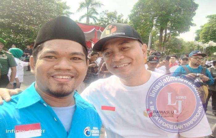 Sementara itu Walikota Surabaya Eri Cahyadi mengatakan, Pelaksanaan pemilu dikota Surabaya insya Allah berjalan dengan aman, tenang dan baik. Untuk kampanye dan pemilu damai, Forkompinda kota Surabaya terus menerus turun lapangan tiada henti dan letih menjaga kondisi kota Surabaya agar tetap aman dan kondusif. Ada kepolisian, Dandim dan saya sendiri turun langsung kelapangan, dan Alhamdulillah sampai detik ini kondisi Surabaya aman terkendali berkat gotong royong kita semua menjaga kota Surabaya yang kita cintai ini, pungkas Eri Cahyadi.
