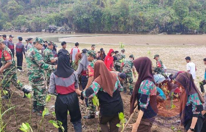 TRENGGALEK lintasjatimnews.com – Sebuah aksi nyata dalam upaya pelestarian lingkungan dilakukan oleh Koramil 0806/11 Panggul, bersama Kelompok Masyarakat (Pokmas) Desa Nglebeng, anggota Saka Wira Kartika, Tagana, dan siswa-siswi SMAN 1 Panggul. Mereka turut serta dalam kegiatan penanaman pohon mangrove yang dilaksanakan di bantaran sungai Konang Desa Nglebeng, Kecamatan Panggul, Kabupaten Trenggalek, Jumat (24/11/2023).
