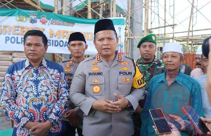 Pada kesempatan itu, pihak Polresta Sidoarjo membantu bahan material pembangunan Masjid Nurul Huda di Desa Wonokalang serta memberikan kitab suci Al Qur’an ke takmir masjid.