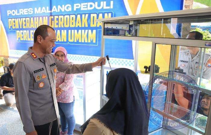 Kapolres Malang, AKBP Putu Kholis Aryana, secara langsung menyerahkan bantuan permodalan dan sarana pengembangan Usaha Mikro, Kecil, dan Menengah (UMKM) kepada tiga keluarga yang menjadi korban di Mapolres Malang, Rabu (29/11/2023).