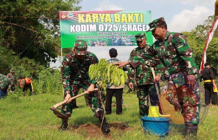 Letkol Inf Yoga Yastinanda, S.I.P mengatakan bahwa beberapa hari ini telah melaksanakan kegiatan karya bakti mulai dari Pembersihan pasar Bunder, Pembersihan selokan di Dk. Ngampunan Ngrampal dan hari ini penanaman pohon di pulau Sepatu Sambungmacan.