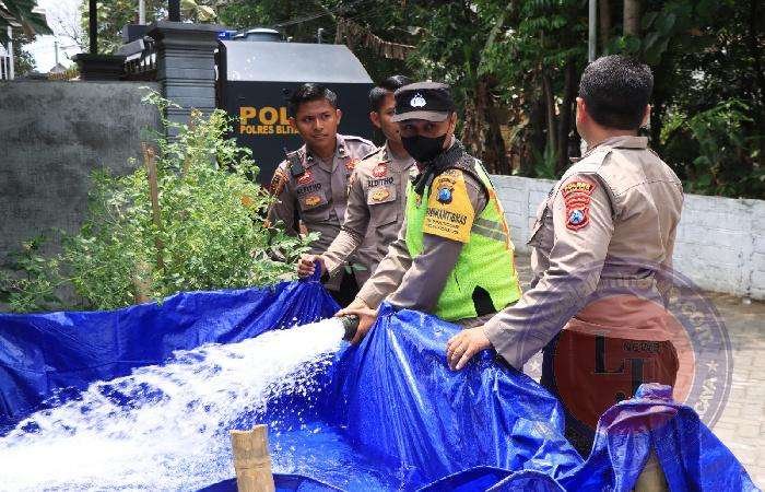 Kali ini, Sat Samapta Polres Blitar Kota memasok 6500 Liter air bersih di lima titik tempat penampungan air di Kelurahan Tanjungsari, Kecamatan Sukorejo, Kota Blitar.
