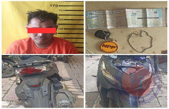 Barang Bukti (satu) unit sepeda motor Honda Vario warna Hitam dengan Nopol L 6347 AAF milik terduga pelaku sebagai sarana (satu) buah kalung rantai emas putih.