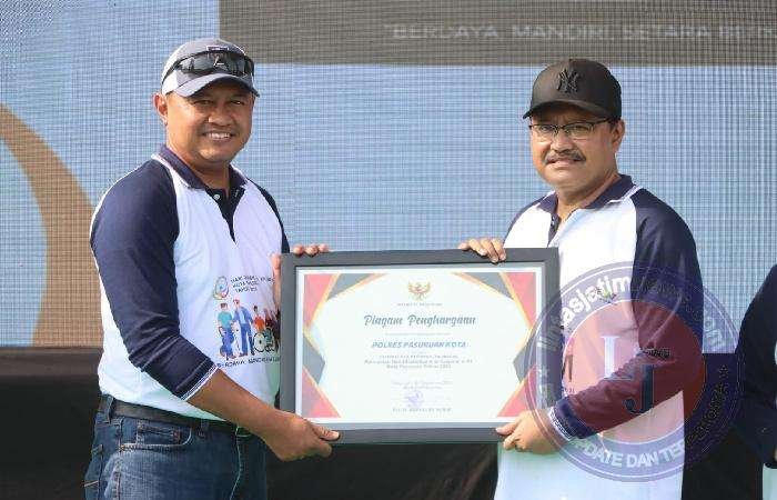 Yang mana piagam penghargaan ini di serahkan langsung oleh Walikota Pasuruan Drs. H. Saifullah Yusuf kepada Kapolres Pasuruan Kota AKBP Makung Ismoyo Jati, S.I.K., M.I.K.