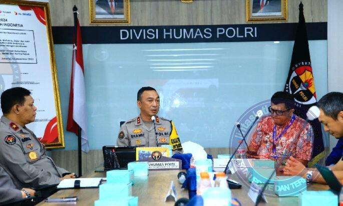 Ditegaskan Kadiv Humas, menjaga pemilu agar berjalan damai menjadi tugas seluruh elemen masyarakat. Oleh karenanya, di ruang digital maupun di kehidupan nyata semangat persatuan harus terus digelorakan.
