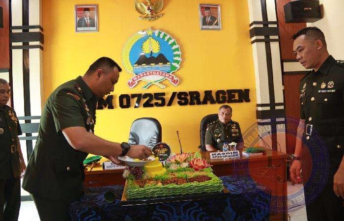 Puncak peringatan Hari Juang TNI AD, Kodim Sragen Upacara dan potong tumpeng