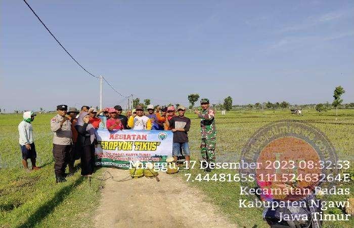 NGAWI lintasjatimnews.com – Babinsa Desa Padas, Koramil 04/Padas, Kodim 0805/Ngawi, Serda Guntur Cahyono bersama Bhabinkamtibmas, dan Kelompok Tani melaksanakan gropyokan hama tikus di areal sawah Desa Padas, kecamatan Padas Kabupaten Ngawi, Minggu (17/12/2023).