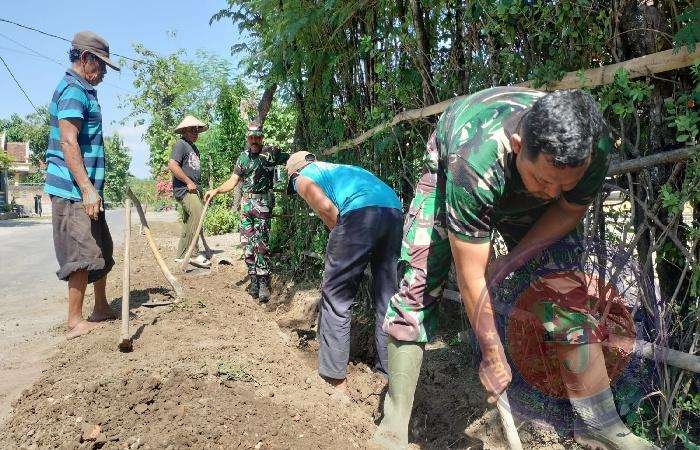 Bersihkan Lingkungan, Anggota Kodim 0802/Ponorogo Kerja Bakti Bersama Warga
