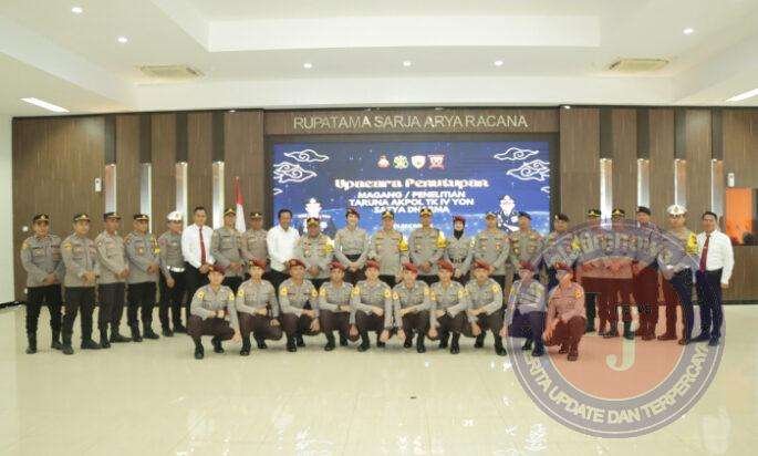 Upacara penutupan magang taruna/taruni Akpol angkatan 55 Yon Satya Dharma di Polres Gresik berjalan dengan lancar dan tertib. Taruna/taruni yang telah mengikuti magang diberikan penghargaan oleh Kapolres Gresik.