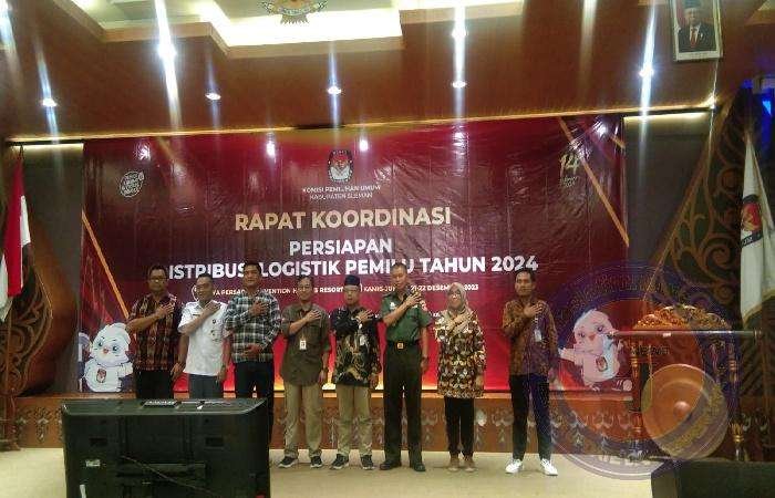 SLEMAN lintasjatimnews.com – Badan Pengawas Pemilihan Umum (Bawaslu) Kabupaten Sleman menggelar rapat koordinasi (Rakor) terkait persiapan Pendistribusian dan Pengawasan Logistik Pemilu Tahun 2024, di Griya Persada Convention Hotel dan Resort Kaliurang Kalurahan Hargobinangun Pakem Sleman, Yang juga dihadiri Kasdim 0732/Sleman Mayor Arm Ronang Sasiarto mewakili Dandim 0732/Sleman,Kamis (21/12/2023).