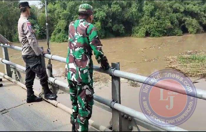 Antisipasi Terjadi Banjir, Babinsa Koramil Karanganyar Bersama Bhabinkamtibmas Pantau Aliran Sungai